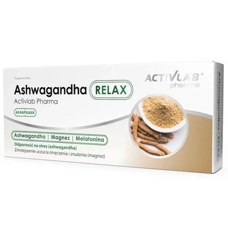 - Ashwagandha RELAX to zaawansowana formuła wspomagająca nocną regenerację i wyciszenie organizmu. Połączenie adaptogennej Ashwagandhy, melatoniny oraz magnezu w formie diglicynianu pomaga zredukować napięcie i ułatwia zasypianie.