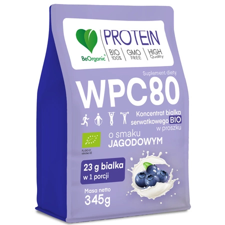 BeOrganic Białko serwatkowe WPC 80 BIO w proszku Jagoda - 345g