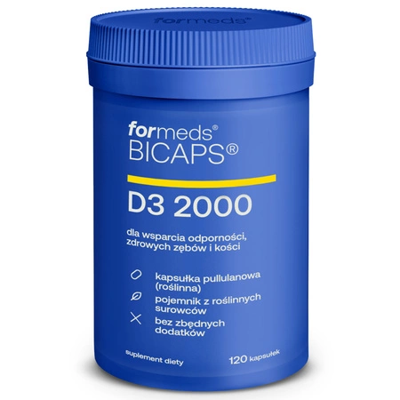 - ostaw na naturalną witaminę D3 w najczystszej formie. Formeds BICAPS D3 dostarcza 2000 IU cholekalcyferolu w naturalnej kapsułce z pullulanu, wzbogaconej o inulinę z korzenia cykorii. Produkt wolny od sztucznych dodatków, w biodegradowalnym opakowaniu.