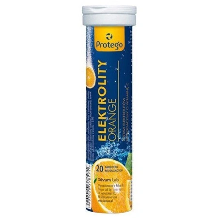 - Przywróć swojemu organizmowi właściwą równowagę elektrolitową. Protego Elektrolity Orange to tabletki musujące stworzone dla osób dorosłych, które potrzebują szybkiego uzupełnienia poziomu sodu, potasu, wapnia, magnezu oraz chlorku.