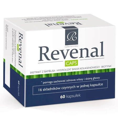 - Revenal to bogata formuła wspierająca zdrowie włosów i skóry. Zawiera unikalne połączenie 20 składników aktywnych, w tym krzemionkę z bambusa, aminokwasy siarkowe oraz miedź dbającą o pigmentację. Tylko jedna kapsułka dziennie!