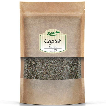 - Duże, ekonomiczne opakowanie (200 g) ziela czystka. Idealne do długotrwałego stosowania dla całej rodziny. Napar jest źródłem polifenoli, które wzmacniają barierę ochronną organizmu i spowalniają procesy starzenia.