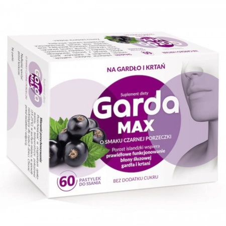 - Ekonomiczne opakowanie 60 pastylek do ssania dla osób borykających się z problemem suchego gardła i krtani. Dzięki wysokiej zawartości ekstraktu z porostu islandzkiego, Garda MAX intensywnie nawilża błony śluzowe dróg oddechowych