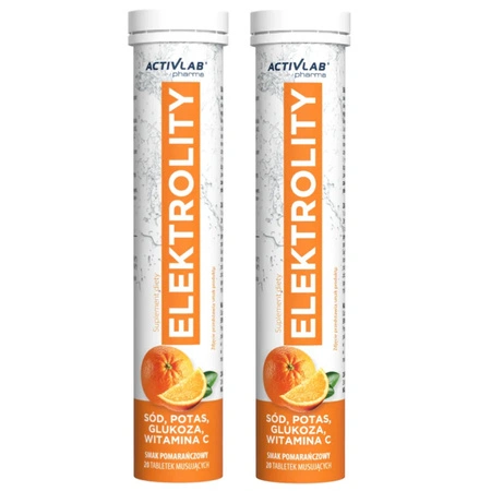 - Zestaw dwóch opakowań Elektrolitów Activlab Pharma o pysznym pomarańczowym smaku. Szybko uzupełnia sód, potas i glukozę stracone podczas upałów lub treningu. Idealne nawodnienie dla aktywnych w formie orzeźwiającego napoju.